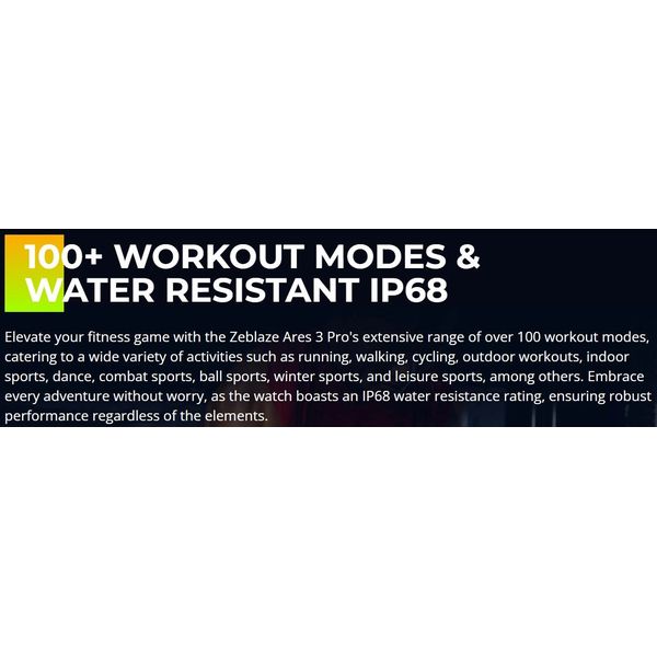 Κομψό smartwatch από την Zeblaze με εξαιρετικά ανθεκτική κατασκευή στρατιωτικών προδιαγραφών (MIL-STD) και αντοχή στο νερό (IP68).Διαθέτει πληθώρα fitness χαρακτηριστικών, αισθητήρα καρδιακών παλμών και υποστηρίζει πραγματοποίηση και απάντηση κλήσεων απευθείας από το smartwatch. Εξοπλίζεται με εντυπωσιακή έγχρωμη οθόνη αφής 1.43" AMOLED που προσφέρει την δυνατότητα να έχετε την οθόνη του smartwatch πάντα ενεργοποιημένη.Συνδέεται μέσω Bluetooth και της εφαρμογής FitCloudPro με το smartphone σου για να λαμβάνεις ειδοποιήσεις μηνυμάτων, κλήσεων και εφαρμογών.Η χαμηλή κατανάλωση λειτουργίας του, σε συνδυασμό με την μπαταρία μεγάλης αυτονομίας, θα σας απαλλάξει από το άγχος της συχνής φόρτισης.Είναι συμβατό με iOS και Android smartphones.