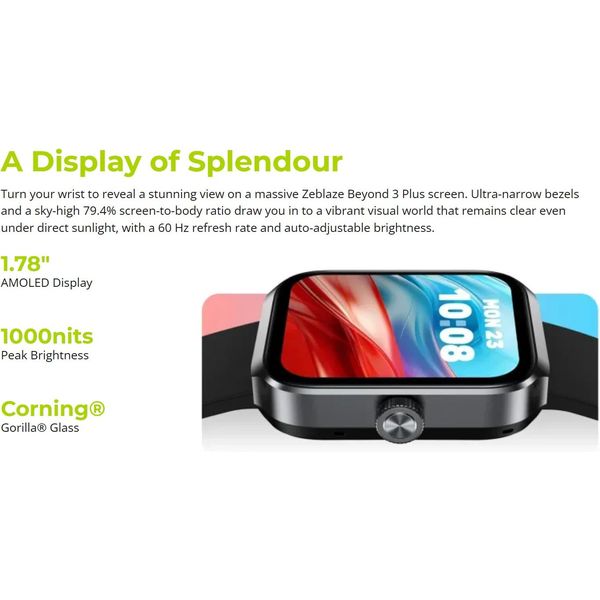 SMARTWATCH ZEBLAZE BEYOND 3 PLUS WITH HEART RATE BLACK