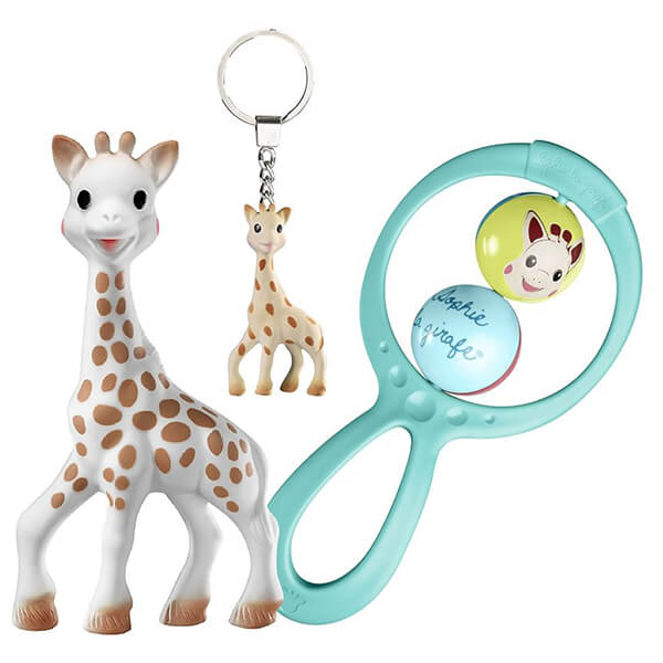 Ένα τέλειο δώρο για το νεογέννητο! Περιλαμβάνει:Την Sophie la girafe, το πρώτο παιχνίδι του μωρού σε 100% φυσικό καουτσούκ για να διεγείρει όλες τις αισθήσεις.Μια κουδουνίστρα με δυο μπάλες που το μωρό μπορεί να περιστρέφει και να παρακολουθεί τα χρώματα που αναμειγνύονται μαζί και το κεφάλι της Σόφι της καμηλοπάρδαλης να γυρίζει γύρω-γύρω.Μια Sophie la girafe μπρελόκ από 100% φυσικό καουτσούκ ώστε και μια μαμά να μπορεί να έχει ένα ομοίωμα της Σόφι μαζί της.