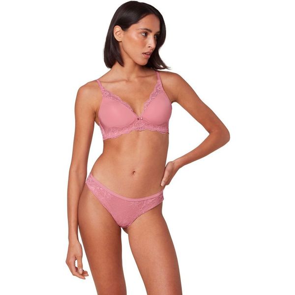 Μοντέρνο bralette με φυσικό look, σχήμα τριγωνικό και δαντέλα.