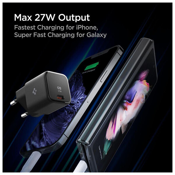 SPIGEN (EU) SPIGEN ARCSTATION WALL CHARGER (1-PORT/ USB-C PD 27W/PPS 25W) BLACK PE2103 (TEL.214071)