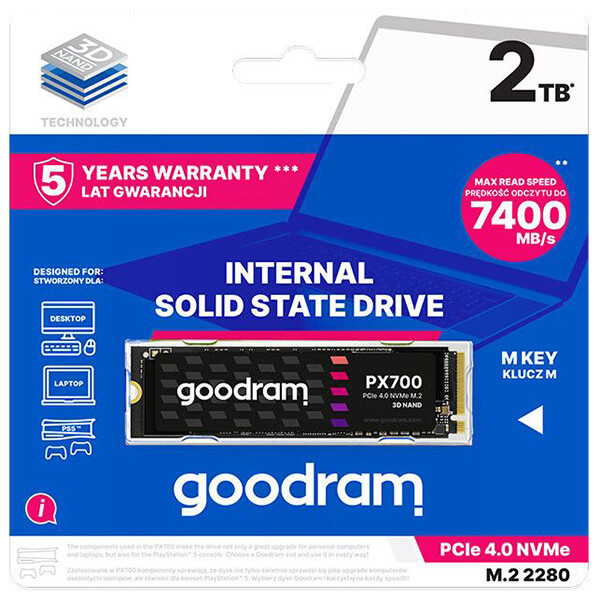 Ο SSD Goodram PX700 είναι η πιο πρόσφατη λύση για τους πιο απαιτητικούς χρήστες που αναζητούν αξιόπιστη μνήμη με την ταχύτερη διεπαφή τέταρτης γενιάς. -Χάρη στο πρότυπο PCIe 4 x4, η μονάδα προσφέρει εξαιρετικές ταχύτητες. Η απόδοση της μονάδας PX700 είναι βέβαιο ότι θα εκτιμηθεί από παίκτες, γραφίστες υπολογιστών και επαγγελματίες που χειρίζονται μεγάλα αρχεία βίντεο και φωτογραφιών. -Είναι ιδανικός για χρήστες που θέλουν να αυξήσουν την απόδοση και την απόκριση του υπολογιστή ή του φορητού υπολογιστή τους. Είναι επίσης εξαιρετικός για παίκτες που χρειάζονται περισσότερο χώρο για δεδομένα και παιχνίδια στην κονσόλα τους PlayStation. Οι εκπληκτικές γρήγορες ταχύτητες ανάγνωσης και εγγραφής της μονάδας PX700 μεταφράζονται άμεσα σε ομαλή απόδοση, γρήγορη φόρτωση παιχνιδιών και εφαρμογών και ταχύτερες λειτουργίες. Χωρητικότητα: 2 ΤB.Διεπαφή: M.2 PCIe NVMe gen. 4 x4 (M key).Form factor: M.2 size 2280.Memory chips: 3D NAND Flash.Διαδοχική απόδοση ανάγνωσης (μέγ.): 7400 MB/s.Διαδοχική απόδοση εγγραφής (μέγ.): 6500 MB/s.TBW (TB): 1200.MTBF: 1.500.000 hours.Θερμοκρασία λειτουργίας: -0°C έως 70°C.Θερμοκρασία αποθήκευσης: -40°C έως 85°C.Διαστάσεις: 80 x 22 x 2.65 mm.Εγγύηση: 5 χρόνια. DOA 7 ημερών