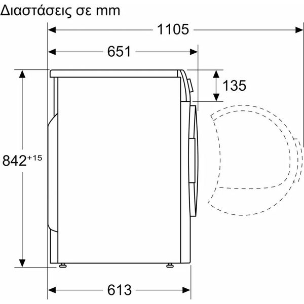 • Βάθος με ανοιχτή πόρτα 90°: 1105 mm
