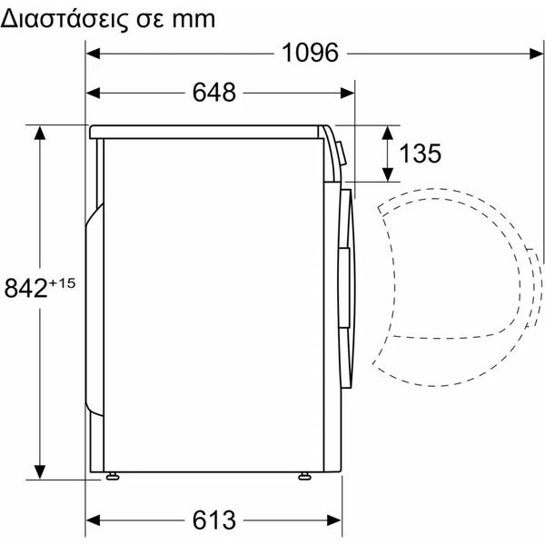 • Βάθος με ανοιχτή πόρτα: 1096 mm