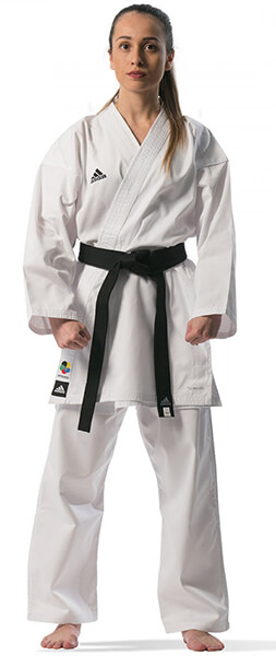 Στολή καράτε από την ADIDAS. Βαμβακερό καραβόπανο περίπου 220g/m 80% βαμβάκι, 20% πολυεστέρα, για νέους και για προχωρημένους. Λάστιχο στην μέση και πρόσθετο ύφασμα κατά μήκος του παντελονιού.