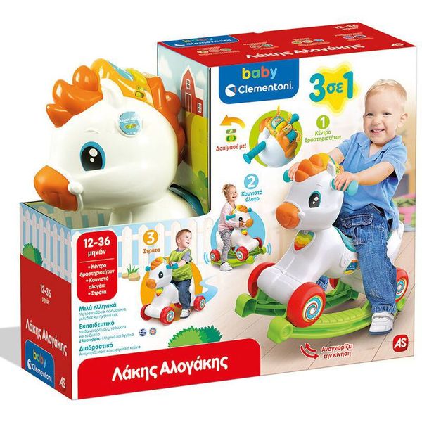 ΣΤΡΑΤΑ BABY CLEMENTONI ΛΑΚΗΣ ΑΛΟΓΑΚΗΣPL1.152103738PL1.152103738BABY CLEMENTONIBABY CLEMENTONIΣΤΡΑΤΕΣΚατηγορία: ΣΤΡΑΤΕΣ •BABY CLEMENTONI στην κατηγορία ΣΤΡΑΤΕΣ Ο τέλειος φίλος που συντροφεύει τα μικρά αγόρια και κορίτσια σε διασκεδαστικές περιπέτειες! Ένα αξιολάτρευτο αλογάκι κατασκευασμένο στην Ιταλία με πολλές δραστηριότητες παιχνιδιού, το οποίο λειτουργεί και σαν κέντρο δραστηριοτήτων. Μπορεί να χρησιμοποιηθεί σαν κουνιστό άλογο ή στράτα.