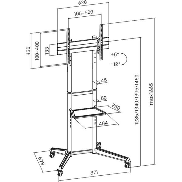 Επιδαπέδια τροχήλατη βάση για τηλεοράσεις 37 - 70", με 4 τροχούς με μηχανισμό κλειδώματος, σε μαύρο χρώμα.