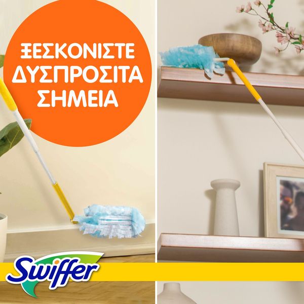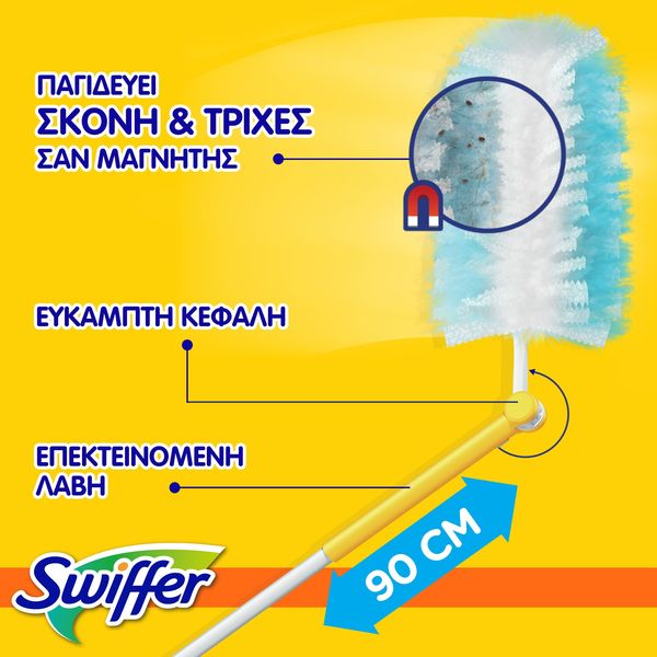 SWIFFER DUSTER XXL (ΣΥΣΤΗΜΑ ΜΕ ΣΚΟΥΠΑ + 2 ΑΝΤΑΛΛΑΚΤΙΚΑ) X2ANA.PRC4621ANA.PRC4621SWIFFERSWIFFERΠΡΟΙΟΝΤΑ ΚΑΘΑΡΙΣΜΟΥΚατηγορία: ΠΡΟΙΟΝΤΑ ΚΑΘΑΡΙΣΜΟΥ •SWIFFER στην κατηγορία ΠΡΟΙΟΝΤΑ ΚΑΘΑΡΙΣΜΟΥ Swiffer Duster Kit XXL (1 Λαβή + 2 Πανάκια) Το Swiffer Duster Kit XXL είναι η ιδανική επιλογή για γρήγορο και αποτελεσματικό ξεσκόνισμα στο σπίτι. Η μεγάλη λαβή καθώς και τα δύο πανάκια που περιλαμβάνονται, επιτρέπουν να φτάσετε με άνεση σε υψηλές, χαμηλές ή δύσκολα προσβάσιμες επιφάνειες. Οι ειδικές ίνες των πανιών «πιάνουν» τη σκόνη, τις τρίχες και ακάρεα, χωρίς να αφήνουν ίχνη ή να σκορπίζουν ρύπους. • Εύκολη Πρόσβαση: Με μεγάλη λαβή εύκολα επεκτείνετε και καθαρίζετε ψηλές ή δυσπρόσιτες περιοχές. • Ισχυρή Λήψη Σκόνης & Τριχών: Τα πανάκια είναι ειδικά σχεδιασμένα για να «μαγνητίζουν» και να συγκρατούν ρύπους και τρίχες κατοικιδίων ή ανθρώπων. • Πρακτικό Σετ Αρχικής Χρήσης: Περιλαμβάνει λαβή + 2 πανάκια έτοιμο για χρήση χωρίς επιπλέον αγορά. • Κατάλληλο για Πολλές Επιφάνειες: Έπιπλα, ράφια, στόρια, πλαισίων παραθύρων, καλλιεργητές σκιάς, αυτοκίνητα ιδανικό για ευρύ καθαριστικό φάσμα. • Συνιστάται Αντικατάσταση: Όταν τα πανάκια χάσουν την ένταση σύλληψης της σκόνης, αντικαταστήστε με νέα ανταλλακτικά για ιδανικά αποτελέσματα. Τεχνικά Χαρακτηριστικά: • Περιεχόμενο Πακέτου: 1 μεγάλη λαβή + 2 πανάκια ξεσκονίσματος • Τύπος: Σύστημα ξεσκονίσματος με αντικαταστάσιμα πανάκια • Κατάλληλες Επιφάνειες: Ψηλές, χαμηλές και δυσπρόσιτες στόρια, έπιπλα, γύψινες περιοχές, παράθυρα • Αντικατάσταση Πανών: Συνιστάται μετά από χρήση που μειώνει την αποδοτικότητα (π.χ. πολύ σκόνη ή κατοικίδια) SWIFFER DUSTER XXL (ΣΥΣΤΗΜΑ ΜΕ ΣΚΟΥΠΑ + 2 ΑΝΤΑΛΛΑΚΤΙΚΑ) X2