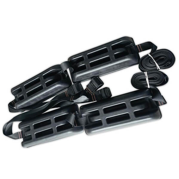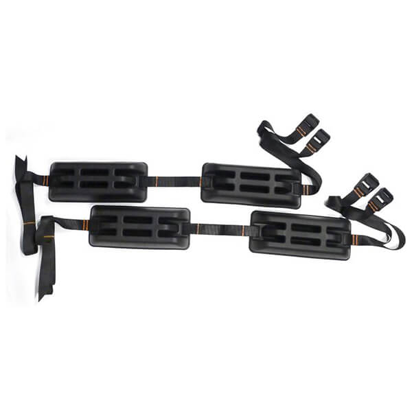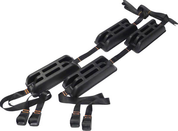 Περιλαμβάνονται ιμάντες για την πρόσδεση του προϊόντος. Οι ιμάντες είναι προσαρμοσμένοι πάνω στο σετ σχάρες, απλά τοποθετήστε το κανό/καγιάκ/SUP/surf ή ότι άλλο, φέρτε τους ιμάντες πάνω από το προϊόν και περάστε την μία άκρη μέσα από την πόρπη. Τραβήξτε μέχρι να σφίξει αρκετά ώστε να μην κουνιέται το προϊόν. Το υλικό από τα μαξιλαράκια είναι ένα συμπαγές μαλακό πλαστικό. Αρκετά συμπαγές για να κρατάει σχήμα και αρκετά μαλακό για να προστατεύει το προϊόν σας.