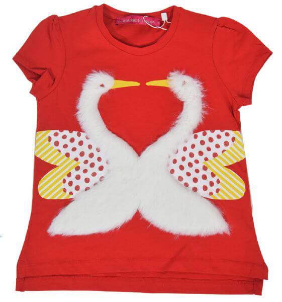 T-shirt σε άκρως καλοκαιρινή διάθεση, από την ισπανική Agatha Ruiz De la Prada που έχει γίνει λατρεία σε όλο τον κόσμο Κατασκευασμένο από 100% βαμβακερό ύφασμα. Διαθέτει τύπωμα γούνινη με δυο κύκνους στην μπροστινή επιφάνειά του.