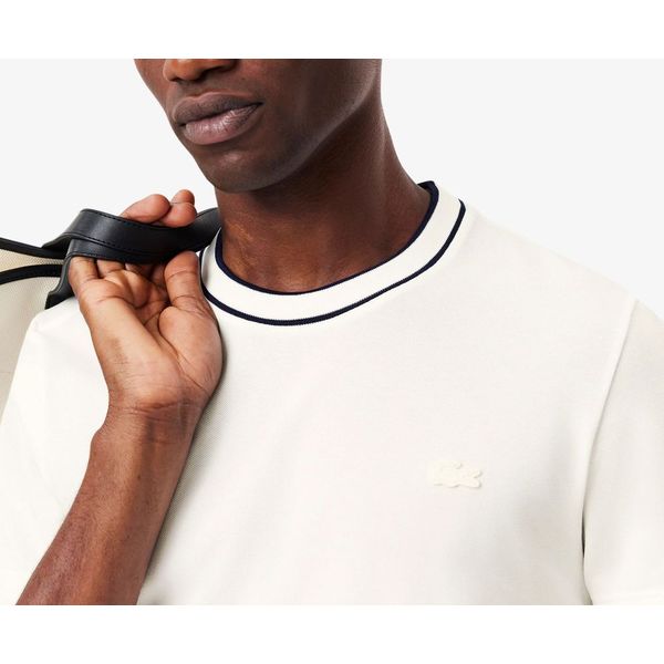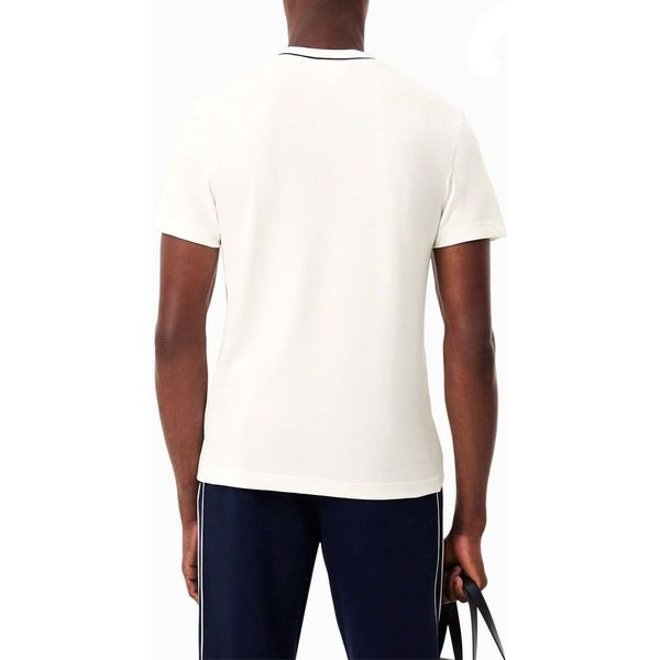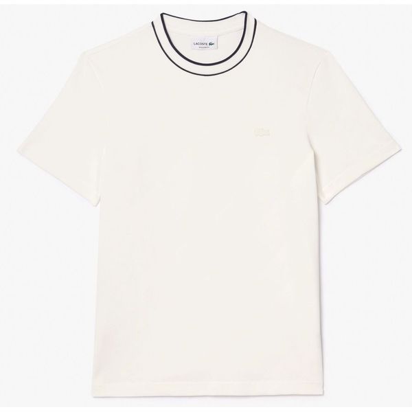 Lacoste σε υπόλευκο χρώμα, με ριγέ λευκό μοτίβο στην λαιμόκοψη.