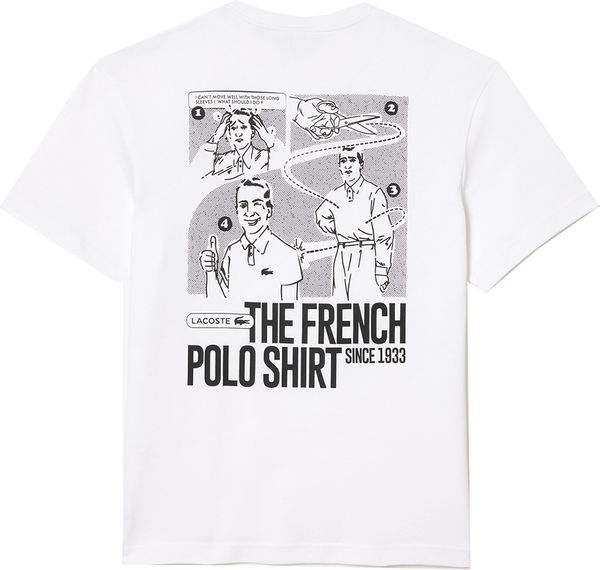 Lacoste και στην πλάτη εντυπωσιακό σκίτσο με την ιστορία του κλασσικού polo t-shirt.