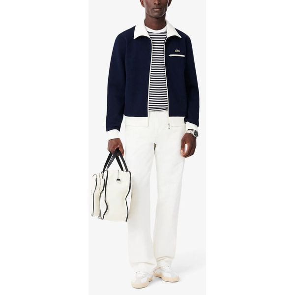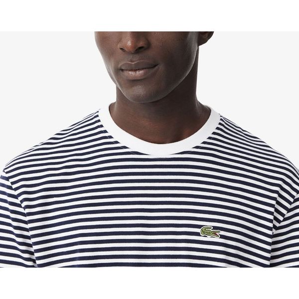 Lacoste με ριγέ μοτίβο σε όλη του την επιφάνεια, σε λευκό και σκούρο μπλε χρώμα.