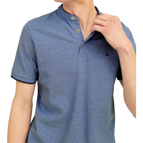 Jack & Jones σε μπλε χρώμα με σκούρα μπλε ρίγα στα μανίκια και στον γιακά.