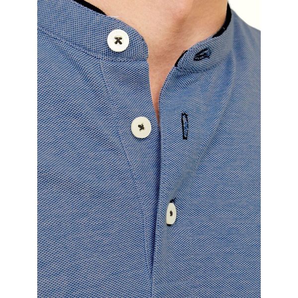 Πρόκειται για μια κοντομάνικη μπλούζα με στενή εφαρμογή, τύπου polo με mao γιακά και τρία μικρά κουμπιά.