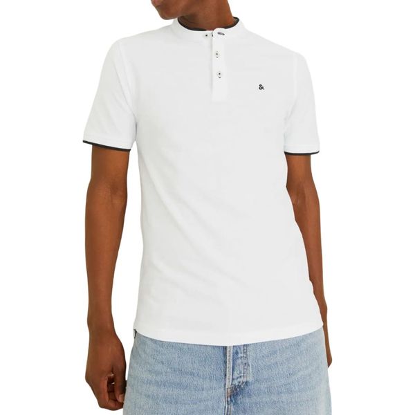 Jack & Jones σε λευκό χρώμα με μαύρη ρίγα στα μανίκια και στον γιακά.