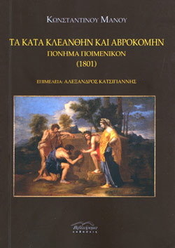 Τα πρωτότυπα λογοτεχνικά έργα στα χρόνια του Νεοελληνικού Διαφωτισμού, και μάλιστα τα εκδομένα, σπανίζουν. Πόσο μάλλον όταν καταπιανόμαστε με ένα έργο που εκδόθηκε τέσσερις φορές στις πρώτες τέσσερις δεκαετίες του 19ου αιώνα και γνώρισε μεγάλη διάδοση. Το ποιμενικό ειδύλλιο του Κωνσταντίνου Μάνου, "Τα κατά Κλεάνθην και Αβροκόμην", το οποίο αριθμεί 1.946 στίχους, εκδόθηκε πρώτη φορά το 1801 στην Βούδα και επανεκδόθηκε αμέσως το 1802 στην Τεργέστη, ενώ μετά γνώρισε άλλες δυο εκδόσεις, το 1811 στην Κων/πολη και το 1836 στην Αθήνα, με αφορμή τον θάνατο του συγγραφέα.
