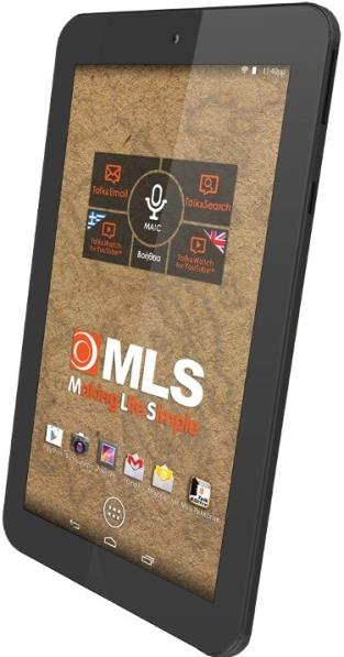 Αυτό το λεπτό και ελαφρύ tablet σας επιτρέπει πραγματικά να περηφανευτείται για το στυλ σου! Το MLSiQTab Atlas μπορεί να σας συνοδεύει παντού! Πολύ ελαφρύ (268 γραμμάρια) , λεπτό (μόλις 9 χιλιοστά), με οθόνη αφής IPS 600 x 1024 7 ίντσες, τετραπύρηνο επεξεργαστή στα 1.3GHz, με μνήμη 8GB, 1 MP μπροστινή κάμερα και 5 MP πίσω κάμερα για φανταστικές φωτογραφίες και με μπαταρία τύπου Li-Ion 2700mAh. Ώρες χρήσης : 3 ώρες αναπαραγωγή βίντεο, 3.3 ώρες αναπαραγωγή μουσικής και έως 200 ώρες χρόνος αναμονής. Επιπλέον, τo MLS iQTab Atlas σας συστήνει την προσωπική σας βοηθό, τη MAIC ( MLS Artificial Intelligence Center ) απλά της μιλάτε και αυτή σας καταλαβαίνει: Γράφει email για εσάς, βρίσκει το αγαπημένο σας τραγούδι στο Youtube, ψάχνει στο Google, ανοίγει όποια εφαρμογή ή λειτουργία επιθυμείτε, βρίσκει τα κοντινότερα σε εσάς φαρμακεία, νοσοκομεία, βενζινάδικα, τράπεζες και μπορεί να σας πλοηγήσει σε αυτά. • Οθόνη: Πολλαπλής αφής 7'' IPS LCD με ανάλυση 1024 x 600. • Επεξεργαστής: Mediatek MTK8127 Quad Core 1.3 GHz. • Μνήμη: 1 GB RAM. • Χωρητικότητα: 8 GB. • Webcam: 5.0 MP με δυνατότητα λήψης Full HD 1080p video (πίσω), 1 MP (εμπρός). • Συνδεσιμότητα: 1 x Micro USB, 1 x Micro SDXC (έως 128 GB), 1 x 3.5 mm audio jack. • Ασύρματη επικοινωνία: Wi-Fi (800.11 a/b/g/n), Bluetooth 4.0. • Πρόσθετα χαρακτηριστικά: Ενσωματωμένα ηχεία και μικρόφωνο, GPS, FM Radio, Google Play, Accelerometer, MLS Artificial Intelligence Center, Talk&Watch, Talk&Search, Talk&Email, Talk&Post, Talk&Drive. • Μπαταρία: Li-ion 2700 mAh. • Διαστάσεις: 108.7 x 188.0 x 9.0 (mm). • Βάρος: 268 γραμμάρια. • Χρώμα: Μαύρο. • Λειτουργικό: Android 4.4 (KitKat). • Περιεχόμενα συσκευασίας: MLS iQTab Atlas, φορτιστής σπιτιού, καλώδιο Micro USB, γρήγορος οδηγός, φορτιστής αυτοκινήτου, βάση στήριξης αυτοκινήτου. • Εγγύηση: 2 χρόνια. DOA 7 ημερών