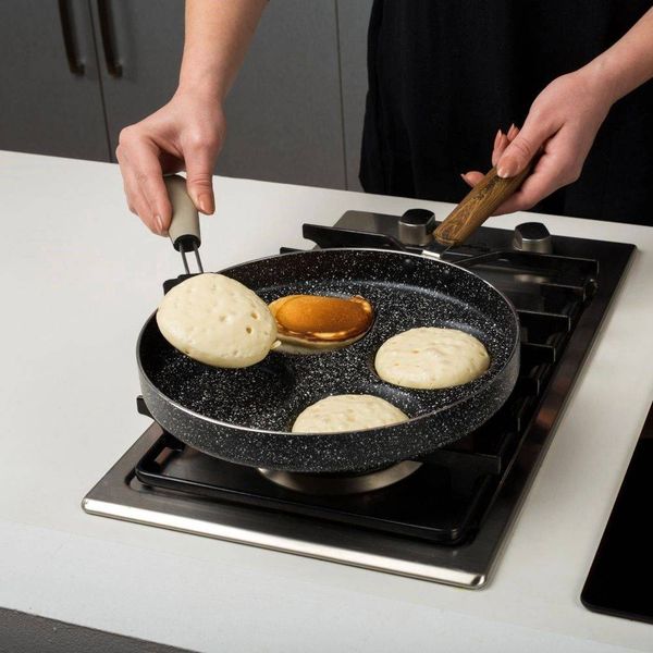 Το τηγάνι pancake διαθέτει 4 θέσεις διαμέτρου 8cm έκαστη, για να ψήνετε ταυτόχρονα 4 pancakes ή για να τηγανίζετε ταυτόχρονα 4 αυγά.