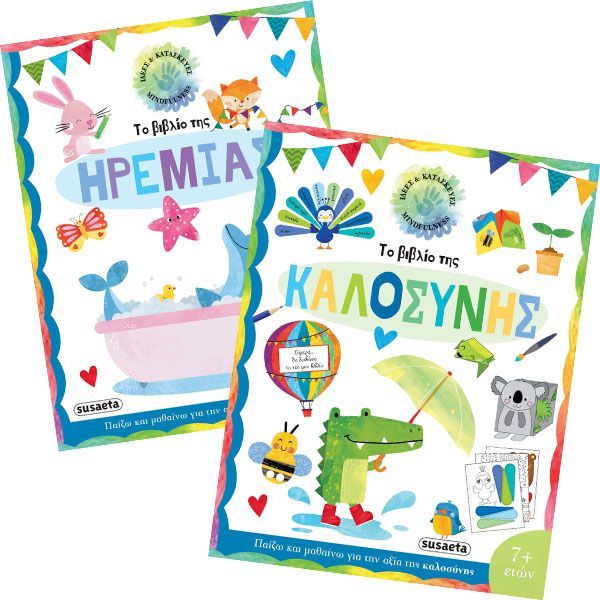 Συγγραφέας: ΣΥΛΛΟΓΙΚΟ ΕΡΓΟ Εκδοτικός οίκος: SUSAETA Σειρά: ΙΔΕΕΣ ΚΑΙ ΚΑΤΑΣΚΕΥΕΣ Σελίδες: 192 Διαστάσεις: 22Χ28 Ημερομηνία Έκδοσης: Μάρτιος 2024 ΤΟ ΒΙΒΛΙΟ ΤΗΣ ΗΡΕΜΙΑΣ Ένα βιβλίο γεμάτο ευχάριστες δραστηριότητες, κατασκευές και ασκήσεις που μαθαίνουν στα παιδιά πώς να κατακτούν την ηρεμία και να αποβάλλουν το άγχος και την ανησυχία. Παράλληλα, ενθαρρύνονται να επικεντρωθούν στο τώρα και να εξασκηθούν στην ενσυνειδητότητα (mindfulness). Οι χειροτεχνίες που προτείνονται είναι σχεδιασμένες έτσι ώστε να τα βοηθήσουν να εναρμονίζονται με τα συναισθήματά τους και να μοιράζονται με τους γύρω τους αυτά που νιώθουν. Με διάτρητες σελίδες για εύκολη χρήση, πολύχρωμα σχέδια που μπορούν να κόψουν τα παιδιά και πολλές προτάσεις για ηρεμία και θετική διάθεση! ΤΟ ΒΙΒΛΙΟ ΤΗΣ ΚΑΛΟΣΥΝΗΣ Ένα βιβλίο γεμάτο ευχάριστες δραστηριότητες, κατασκευές και ασκήσεις που εστιάζουν στην αξία της καλοσύνης, της ευγένειας και του σεβασμού προς τον εαυτό μας, τους συνανθρώπους μας, τα ζώα και φυσικά τον πλανήτη μας. Παράλληλα με τις αξίες αυτές, τα παιδιά ενθαρρύνονται να επικεντρωθούν στο τώρα και να εξασκηθούν στην ενσυνειδητότητα (mindfulness). Οι χειροτεχνίες που προτείνονται είναι σχεδιασμένες έτσι ώστε να τα βοηθήσουν να εναρμονίζονται με τα συναισθήματά τους και να μοιράζονται με τους γύρω τους αυτά που νιώθουν. Με διάτρητες σελίδες για εύκολη χρήση, πολύχρωμα σχέδια που μπορούν να κόψουν τα παιδιά και πολλές προτάσεις για καλές πράξεις κάθε μέρα Περιέχονται τα βιβλία: ΤΟ ΒΙΒΛΙΟ ΤΗΣ ΗΡΕΜΙΑΣ ΤΟ ΒΙΒΛΙΟ ΤΗΣ ΚΑΛΟΣΥΝΗΣ