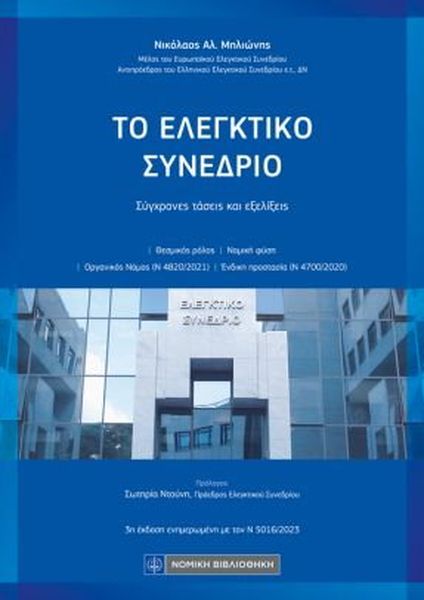 Το βιβλίο "Το Ελεγκτικό Συνέδριο - Σύγχρονες τάσεις και εξελίξεις" αποτελεί την 3η επικαιροποιημένη έκδοση του γνωστού βιβλίου του Ν. Αλ. Μηλιώνη με τον εκδοτικό οίκο Νομική Βιβλιοθήκη.