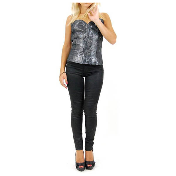 TOP JLO ΚΟΡΣΕΣ ΜΕ ΑΣΗΜΙ ΛΕΠΤΟΜΕΡΕΙΕΣ ΜΑΥΡΟ (XS) (PL3.122013266)