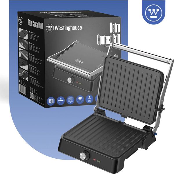 WESTINGHOUSE στην κατηγορία ΤΟΣΤΙΕΡΕΣ Ρετρό γκριλιέρα WKCG907BK από την Westinghouse! Διαθέτει ισχύ 2200W, εξασφαλίζοντας γρήγορο και ομοιόμορφο ψήσιμο, αντικολλητικές πλάκες που καθαρίζονται εύκολα και άνοιγμα 180? για μεγαλύτερη επιφάνεια ψησίματος. Με δυνατότητα ρύθμισης του ύψους καθώς και δυνατότητα ρύθμισης της θερμοκρασίας, προσφέρει άμεσο, υγιεινό και ασφαλές ψήσιμο κρεατικών, λαχανικών και ψαριών. Το κλείδωμα ασφαλείας, η χειρολαβή "cool touch" και η αντιολισθητική βάση κάνουν τη γκριλιέρα εύκολη στη μεταφορά και ασφαλή στη χρήση. Ο κομψός ρετρό σχεδιασμός της ταιριάζει σε κάθε κουζίνα.
