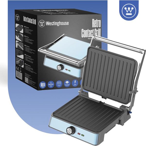 WESTINGHOUSE στην κατηγορία ΤΟΣΤΙΕΡΕΣ Ρετρό γκριλιέρα WKCG907BU από την Westinghouse! Διαθέτει ισχύ 2200W, εξασφαλίζοντας γρήγορο και ομοιόμορφο ψήσιμο, αντικολλητικές πλάκες που καθαρίζονται εύκολα και άνοιγμα 180? για μεγαλύτερη επιφάνεια ψησίματος. Με δυνατότητα ρύθμισης του ύψους καθώς και δυνατότητα ρύθμισης της θερμοκρασίας, προσφέρει άμεσο, υγιεινό και ασφαλές ψήσιμο κρεατικών, λαχανικών και ψαριών. Το κλείδωμα ασφαλείας, η χειρολαβή "cool touch" και η αντιολισθητική βάση κάνουν τη γκριλιέρα εύκολη στη μεταφορά και ασφαλή στη χρήση. Ο κομψός ρετρό σχεδιασμός της ταιριάζει σε κάθε κουζίνα.