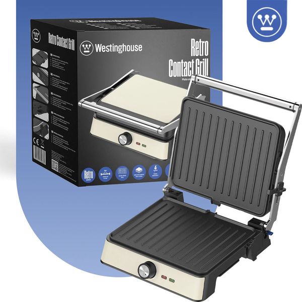 WESTINGHOUSE στην κατηγορία ΤΟΣΤΙΕΡΕΣ Ρετρό γκριλιέρα WKCG907WK από την Westinghouse! Διαθέτει ισχύ 2200W, εξασφαλίζοντας γρήγορο και ομοιόμορφο ψήσιμο, αντικολλητικές πλάκες που καθαρίζονται εύκολα και άνοιγμα 180? για μεγαλύτερη επιφάνεια ψησίματος. Με δυνατότητα ρύθμισης του ύψους καθώς και δυνατότητα ρύθμισης της θερμοκρασίας, προσφέρει άμεσο, υγιεινό και ασφαλές ψήσιμο κρεατικών, λαχανικών και ψαριών. Το κλείδωμα ασφαλείας, η χειρολαβή "cool touch" και η αντιολισθητική βάση κάνουν τη γκριλιέρα εύκολη στη μεταφορά και ασφαλή στη χρήση. Ο κομψός ρετρό σχεδιασμός της ταιριάζει σε κάθε κουζίνα.