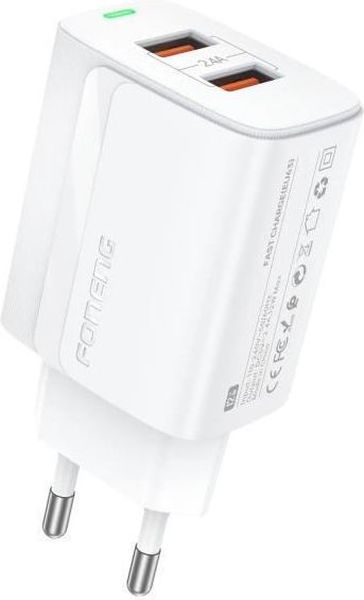 TRAVEL FAST CHARGER FONENG EU63 WITH DUAL OUTPUT 2XUSB A 12W 2.4A WHITE