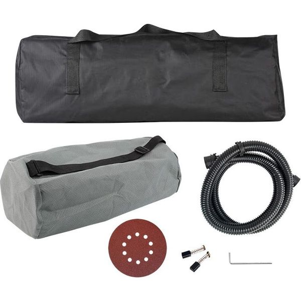 Περιλαμβάνονται:Εύκαμπτος σωλήνας (2m), Σάκος μεταφοράς, Σάκος συγκέντρωσης σκόνης, Δίσκους χαρτιού λείανσης (6 τεμ.: 120?2, 180?2, 240?2), Κλειδί άλλεν, Σετ ψύκτρες.