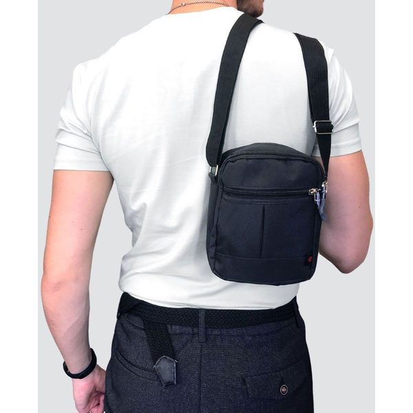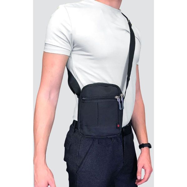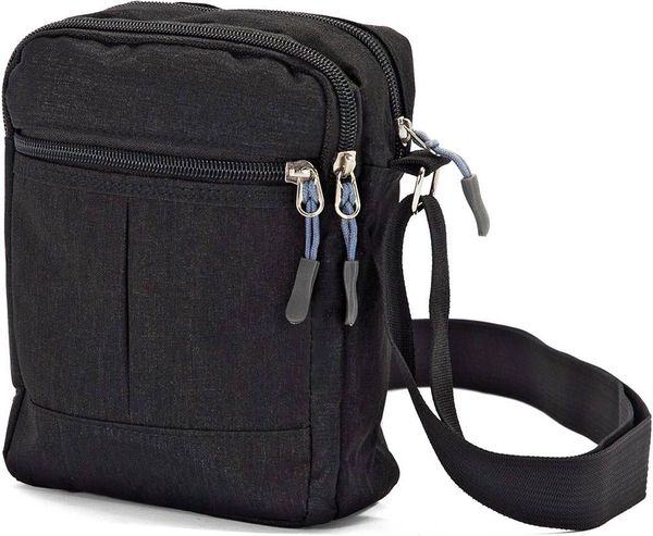 1 κεντρική θήκη που χωράει αρκετά πράγματα μέσα1 ελάχιστα μικρότερη μπροστά1 μικρότερο τσεπάκι στο μπροστινό μέροςΚλείσιμο με φερμουάρ που στο τελείωμά του έχει έναν όμορφο οδηγό σε μπλε χρώμαΡυθμιζόμενος ιμάντας με φάρδος 4 cm με δυνατότητα χρήσης στον ώμο ή χιαστίΥλικό: CanvasΔιαστάσεις: 14 x 07 x 18 cmΧρώμα: Μαύρο