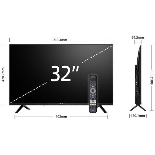 • Διαγώνιος οθόνης: 32? / 80 cm. • Ανάλυση: Full HD 1920?1080. • Τύπος panel: LED LCD. • HDR: HDR10 / HLG. • HbbTV: 2.0. • Φωτεινότητα 200 nits. • Αναλογία: 16:9. • Αντίθεση: 3000:1. • Αριθμός χρωμάτων: 16.7M. • Γωνία Θέασης: 178° / 178°. • Χρόνος απόκρισης: 9.5 ms. • Ασύρματη σύνδεση: Wi-Fi 2.4/5G, Bluetooth. • Συνδεσιμότητα: CI/CI+, ψηφιακή οπτική/ψηφιακή έξοδος ήχου, 2x HDMI 1.4, έξοδος ακουστικών, LAN, 1x USB. • Tuner: DVB-T/T2/C/S2. • Ήχος: 2? 8 W με Dolby Audio & dbx-tv. • Λειτουργικό: Google TV. • Φωνητικές Εντολές: Google Assistant. • Πρόσθετες λειτουργίες: Chromecast, teletext, USB media player, χρονοδιακόπτης, γονικό κλείδωμα. • VESA στήριξη: 200?200 mm. • Ενεργειακή Κλάση HDR: E. • Κατανάλωση Ενέργειας HDR: 26 kWh. • Τάση λειτουργίας: 220-240 V AC. • Χρώμα: Μαύρο. • Διαστάσεις χωρίς βάση (ΠxΥxΒ): 71.8 x 42 x 6.92 cm. • Διαστάσεις με βάση (ΠxΥxΒ): 71.8 x 46.6 x 18 cm. • Βάρος: 3.5kg. • Εγγύηση: 2 χρόνια. DOA 7 ημερών