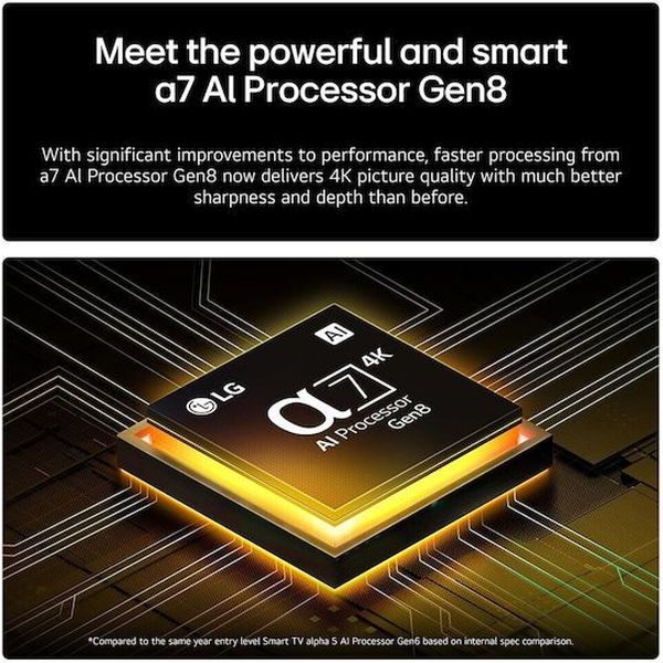 Ο επεξεργαστής της LG αναβαθμίζει χαμηλότερης ανάλυσης περιεχόμενο, βελτιώνοντας την ευκρίνεια, τη φωτεινότητα και τη συνολική ποιότητα εικόνας στο 4K Super Upscaling.