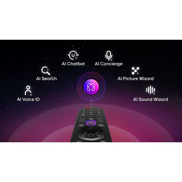 AI Magic Remote Εύκολος και έξυπνος έλεγχος με αισθητήρα κίνησης και τροχό κύλισης. Στοχεύστε, κάντε κλικ ή χρησιμοποιήστε φωνητικές εντολές για άμεση πρόσβαση σε λειτουργίες και περιεχόμενο.