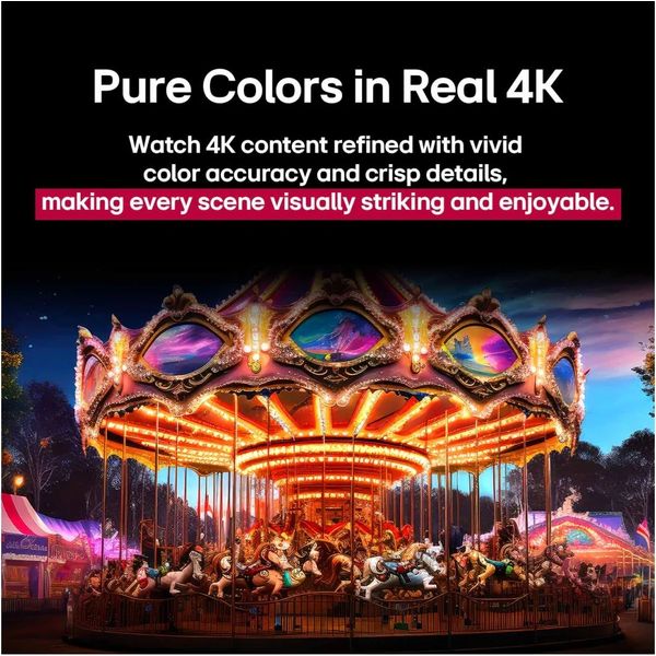 Παρακολουθήστε περιεχόμενο 4K βελτιωμένο με ακρίβεια ζωντανών χρωμάτων και υψηλή ευκρίνεια λεπτομερειών, καθιστώντας κάθε σκηνή εντυπωσιακή και απολαυστική.