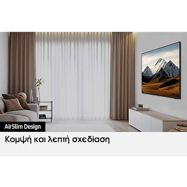 Κομψή και λεπτή Λόγω της εντυπωσιακά λεπτής σχεδίασης της τηλεόρασης, εφαρμόζει τέλεια στον τοίχο όπως ποτέ άλλοτε.