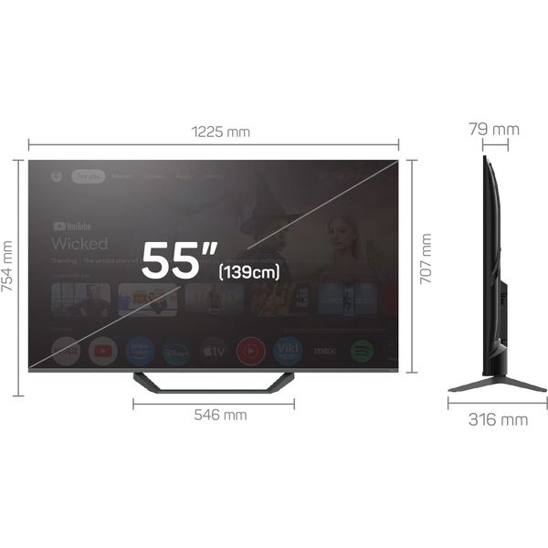 Με κομψό σχεδιασμό, λεπτό πλαίσιο και σταθερή βάση, η τηλεόραση προσαρμόζεται εύκολα σε κάθε χώρο. Ο ήχος υποστηρίζει πρότυπα όπως Dolby Atmos, προσφέροντας καλύτερη ακουστική εμπειρία.