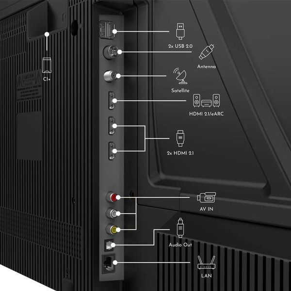 Ο ενσωματωμένος τριπλός δέκτης DVB-T/T2/C/S/S2 υποστηρίζει λήψη μέσω κεραίας, καλωδίου ή δορυφόρου με επιπλέον λειτουργίες HbbTV, CI+ και HEVC/H.265.