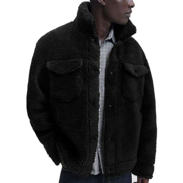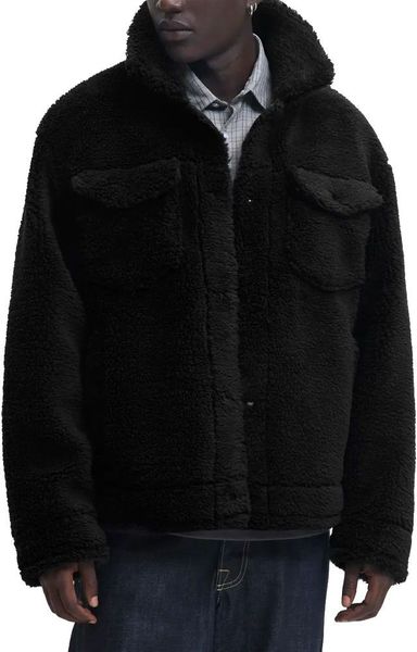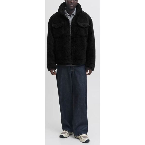 Τζάκετ με την υπογραφή της Jack & Jones με teddy υφή σε όλη του την επιφάνεια, σε μαύρο χρώμα.