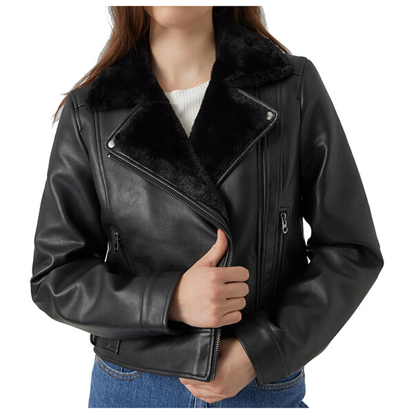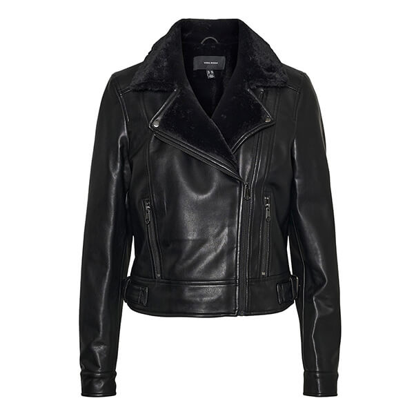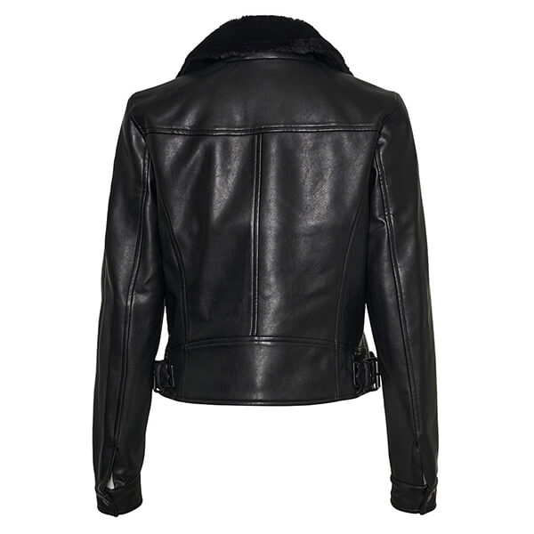 Κλείνει ελαφρώς στο πλάι με φερμουάρ και έχει biker γιακά.