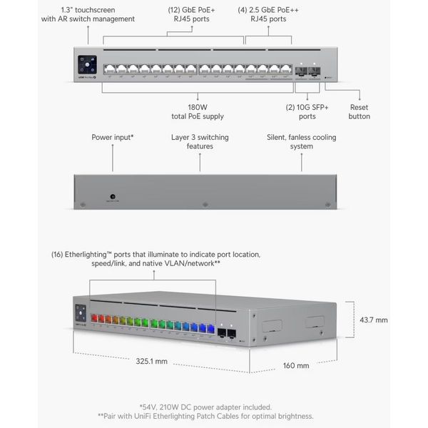 Αρχική > Υπολογιστές > Switches > UBIQUITI SWITCH UNIFI 12XRJ45 GBIT/4XRJ45 2.5G/2XSFP+ MANAGED POE+ 180W 19"