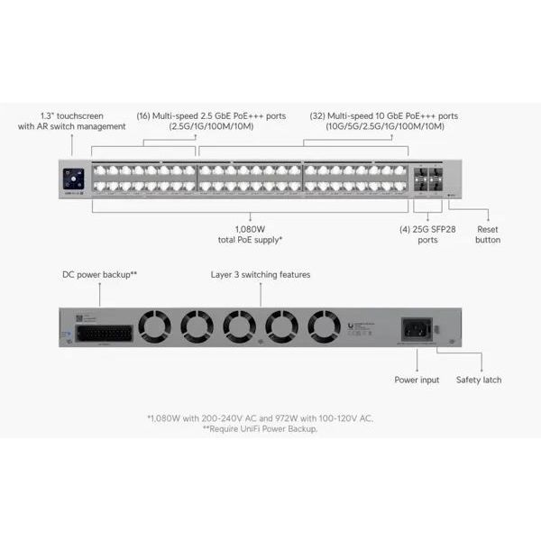 UBIQUITI SWITCH UNIFI 16X2.5G RJ45/32X10G RJ45/4XSFP28 MANAGED 19" RACK-MOUNTABLE