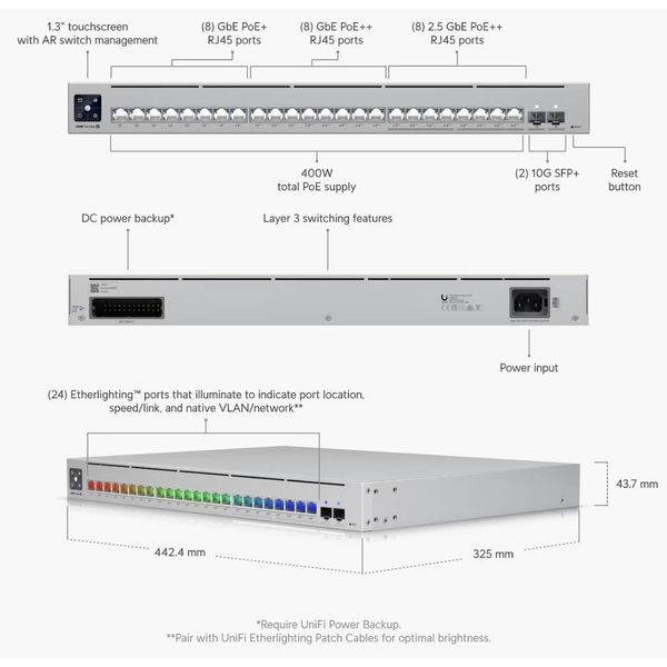 UBIQUITI SWITCH UNIFI 16XRJ45 GBIT/8XRJ45 2.5G/2XSFP+ MANAGED POE+ 400W MAX 19" (PER.273730)