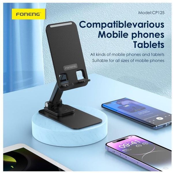 universal desktop foldable holder foneng cp125 metal 360 for tablets smartphones black extra photo 1universal desktop foldable holder foneng cp125 metal 360 for tablets smartphones black extra photo 2