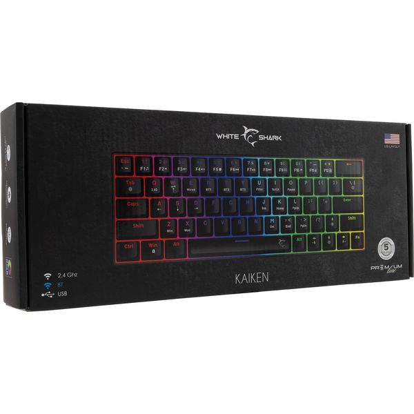 WHITE SHARK WIRELESS/BT/TYPE-C MECHANICAL KEYBOARD RED SWITCH GK-003111 US BLACK KAIKEN