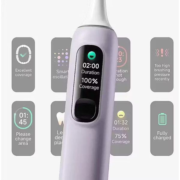 - Αισθητήρας 6 ζωνών και οθόνη εμφάνισης προόδου βουρτσίσματος/τυπικών σφαλμάτων κάλυψης.