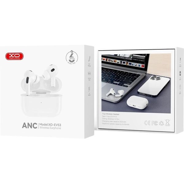 XO EV53 BLUETOOTH ΑΚΟΥΣΤΙΚΑ HANDSFREE 5ΗΣ ΓΕΝΙΑΣ ΜΕ ΘΗΚΗ ΑΣΥΡΜΑΤΗΣ ΦΟΡΤΙΣΗΣ ΚΑΙ NOISE CANCEL WHITE