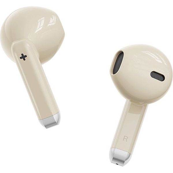 Bluetooth ακουστικά handsfree με θήκη φόρτισης, σε μπεζ χρώμα