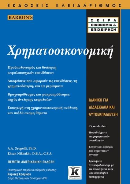 ISBN: 978-960-461-460-8 Συγγραφέας: ΓΚΡΟΠΕΛΙ Α. Εκδοτικός οίκος: ΚΛΕΙΔΑΡΙΘΜΟΣ Σειρά: ΟΙΚΟΝΟΜΙΑ ΚΑΙ ΕΠΙΧΕΙΡΗΣΗ Σελίδες: 680 Διαστάσεις: 17Χ24 Ημερομηνία Έκδοσης: Σεπτέμβριος 2012 Aλλο ένα βιβλίο της καταξιωμένης σειράς Οικονομία και Επιχείρηση! Το βιβλίο περιλαμβάνει τους βασικούς επιχειρηματικούς και οικονομικούς όρους με τους ορισμούς τους, χωριστές ενότητες ανασκόπησης των σημαντικότερων εννοιών, και εύστοχα παραδείγματα επιχειρηματικών κινήσεων και συναλλαγών. Είναι ιδανικό για αυτοδιδασκαλία και θα αποδειχθεί πολύτιμο εφόδιο για καθηγητές και φοιτητές. Την επιστημονική επιμέλεια της ελληνικής έκδοσης υλοποίησε η Κυριακή Κοσμίδου, επίκουρη καθηγήτρια του Τομέα Οικονομικής των Επιχειρήσεων, στο τμήμα Οικονομικών Επιστημών του Αριστοτελείου Πανεπιστημίου Θεσσαλονίκης. Περιεχόμενα Μέρος Ι: Εισαγωγή Μέρος 2: Αξιολόγηση: Χρόνος και Κίνδυνος Μέρος 3: Εισαγωγή στην Επενδυτική Πολιτική: Προϋπολογισμός Επενδύσεων Μέρος 4: Επενδυτικές, Χρηματοοικονομικές, και Μερισματικές Αποφάσεις Μέρος 5: Επενδυτικές Αποφάσεις Βασισμένες Σε Χρηματοοικονομικά Παράγωγα Μέρος 6: Βραχυπρόθεσμες Και Μακροπρόθεσμες Πήγες Κεφαλαίου Μέρος 7: Εισαγωγή Στη Χρηματοοικονομική Ανάλυση Μέρος 8: Διαχείριση Του Κεφαλαίου Κίνησης Μέρος 9: Ανάλυση Οικονομικών Εκθέσεων